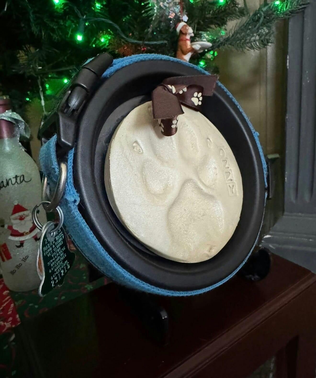 A: Many pet parents use our frames to display tags, paw prints, or nose prints — with or without a collar.